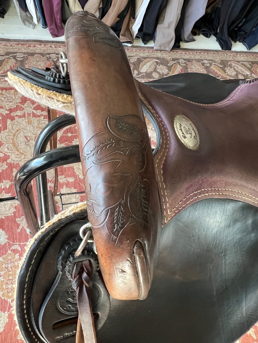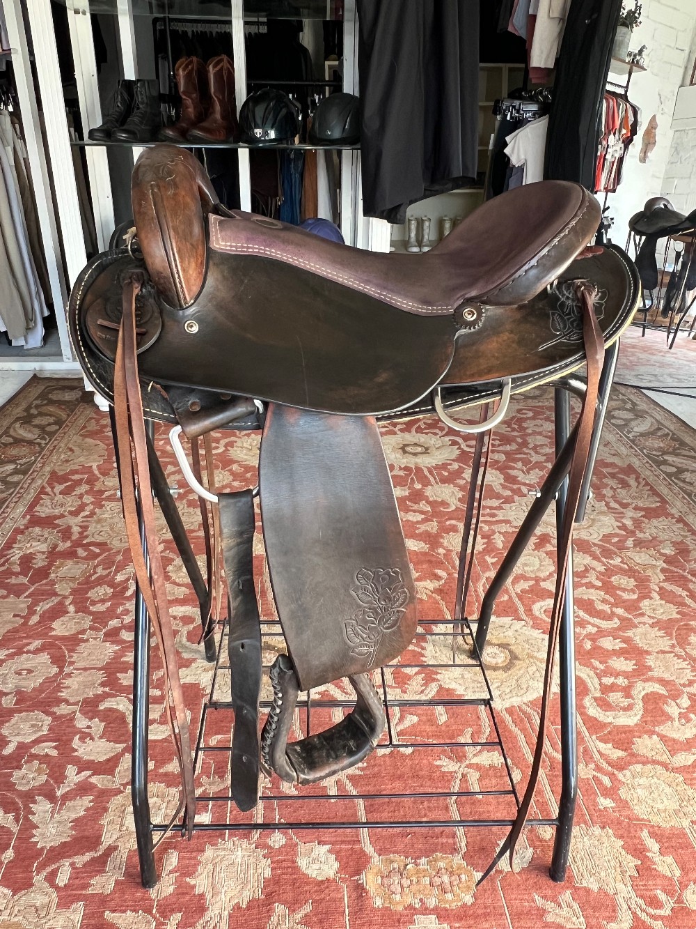 This gorgeous Rocking R Saddlery Endurance Saddle is in great working condition! The saddle features gorgeous floral tooling patterns!