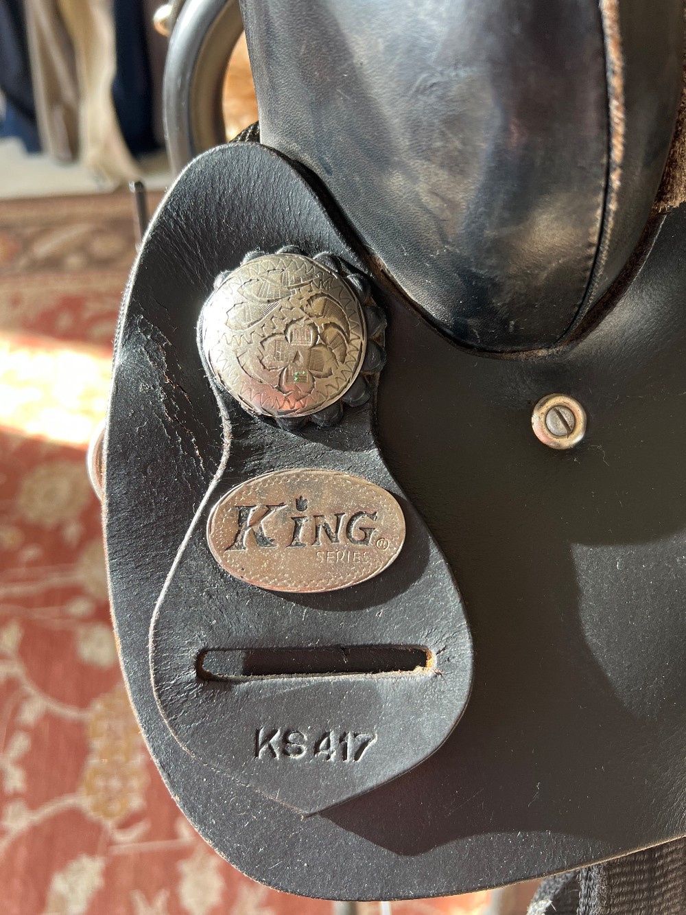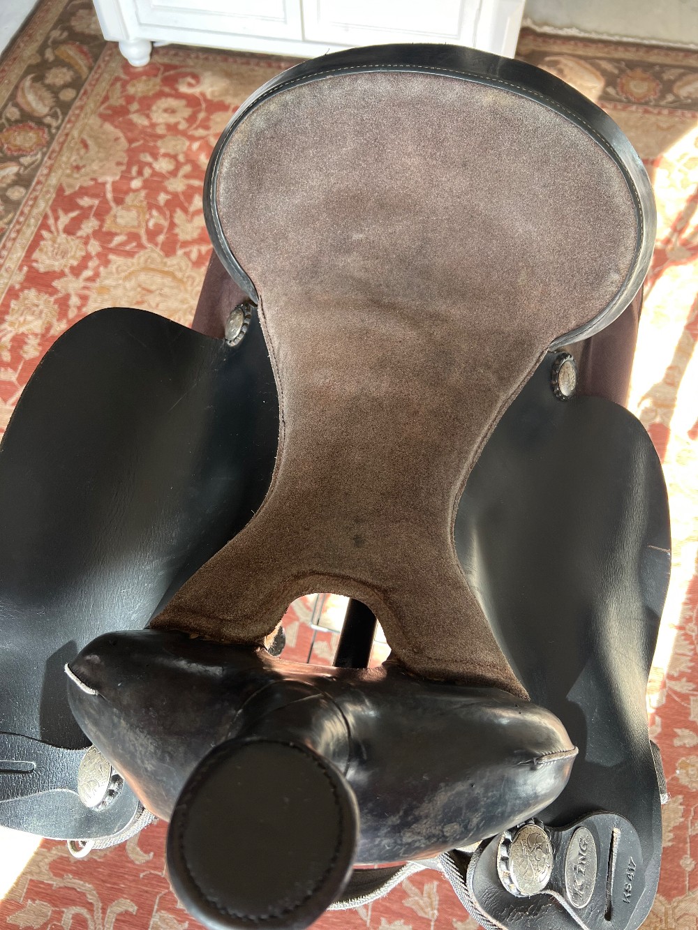This King Series saddle has many signs of usage but would be perfect for an equestrian just starting out! (Signs of usage are shown in the product photos, including some bending in the leather due to the way it was previously stored.)